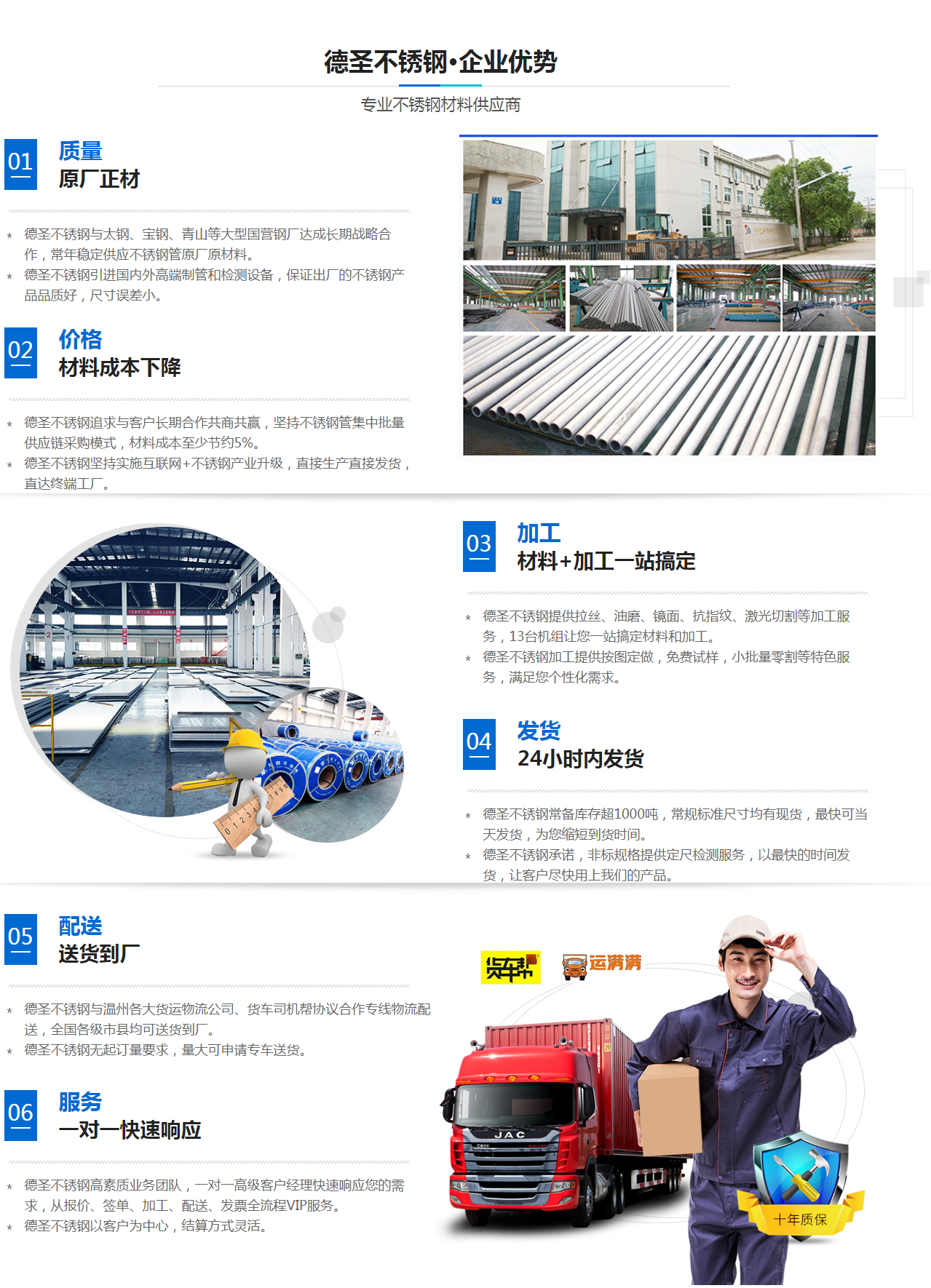 我公司成立于2018年,位于國內大型的不銹鋼管生產基地浙江省麗水市松陽縣工業園區,是國內較早涉足于不銹鋼行業的民營企業之一,現專業銷售各種不同規格的不銹鋼無縫鋼管、焊管、異形管及不銹鋼鏡面管的企業。主要銷售產品品種有:304、304L、321、316、316L、301、310S、2205雙相鋼等特殊鋼。銷售規格齊全:外徑Φ3mm至Φ2100mm,產品標準參照:ASTM-A312,ASTM-A213,AMTM-A270,GB/T14976-2012,GB/T13296-2007等國內外常用流體管標準及醫用管道標準,我公司常年備有常規不銹鋼管道現貨庫存近5000噸,也可以根據客戶提出生產標準及要求定制特殊材質、特殊規格的產品。本公司銷售的產品廣泛應用于石油、化工、核電站、鐵道、環保設備、乳品機械、醫藥機械、食品機械、造船造紙業、排污工程、生物工程、市政工程等行業。我公司連續三年經省質量技術監督局產品抽檢,合格率達到99.99%。本公司以優質的產品質量獲得同行業認可,更以實惠的價格受到了國內外......